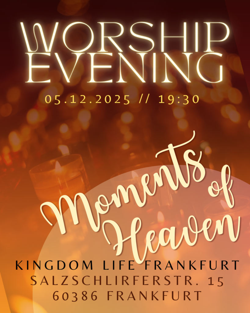 Kingdom Life ist eine internationale Gemeindefamilie. Wir lieben Jesus und wollen gemäß dem Königreich Gottes leben, wo immer wir sind. Wir laden dich ein, gemeinsam mit uns Gottes Gegenwart zu erleben, seine Kraft zu erfahren und seine Absichten zu verfolgen. Unsere Gottesdienste werden auf Englisch und Deutsch gehalten.